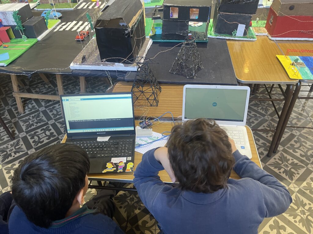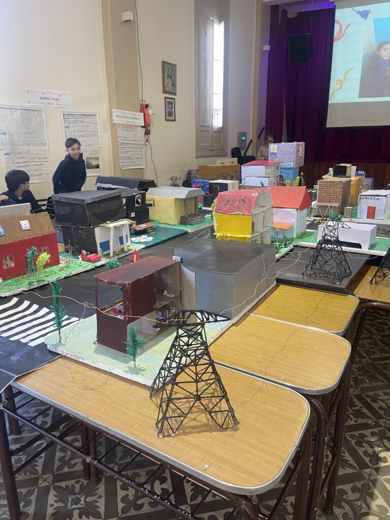 El trabajo consistió en el armado de una ciudad con energía eléctrica, en la que se representó el funcionamiento de un molino con motor que simula la energía eólica, mostrando cómo esta puede transformarse en energía eléctrica para abastecer a los hogares y espacios de la maqueta. Como parte de la propuesta tecnológica, los alumnos Pedro Alvarracín y Lorenzo Pereyra desarrollaron un semaforo con placas Arduino, el cual fue programado íntegramente por ellos, demostrando el potencial de la programación aplicada a la vida cotidiana.