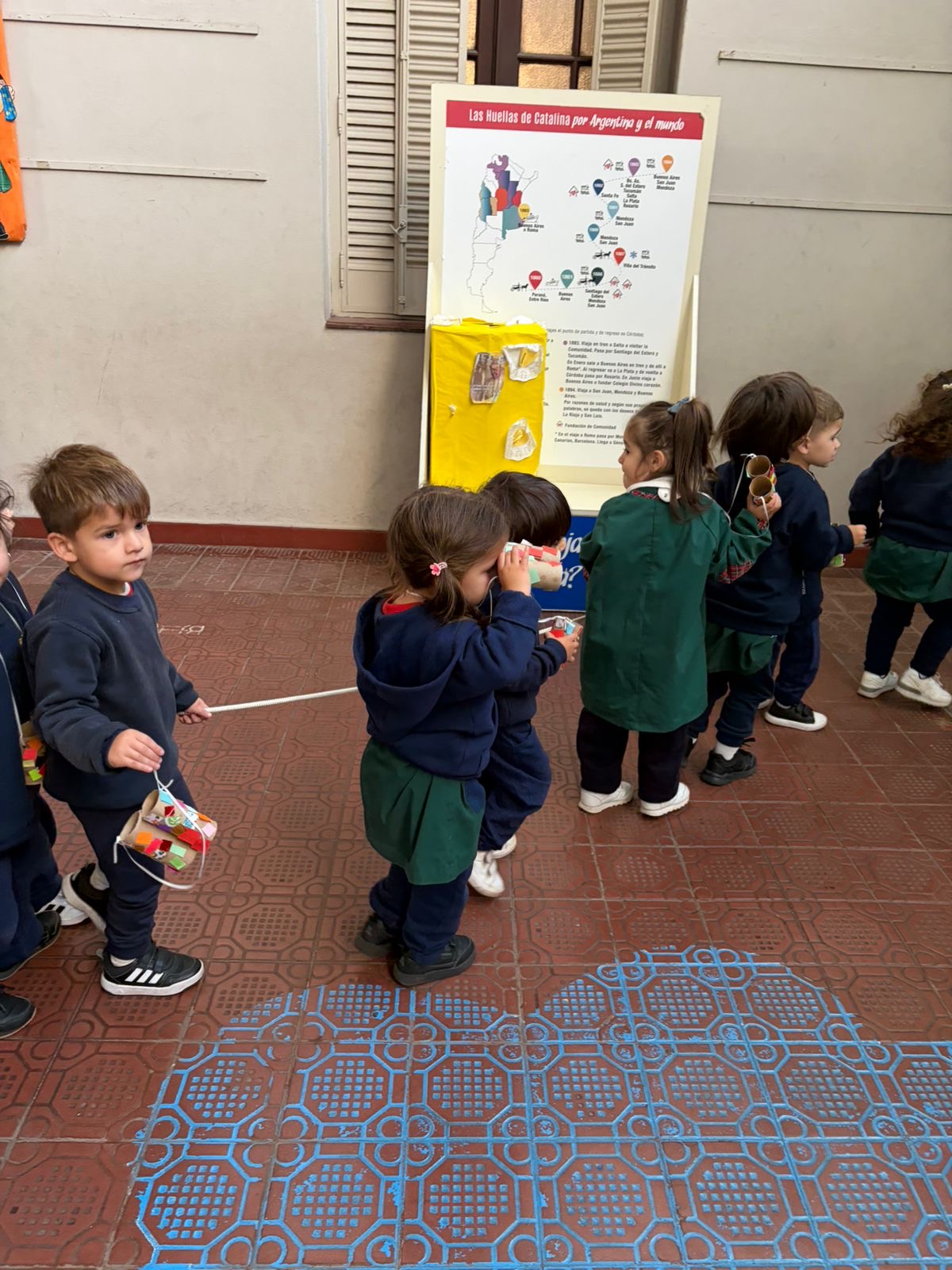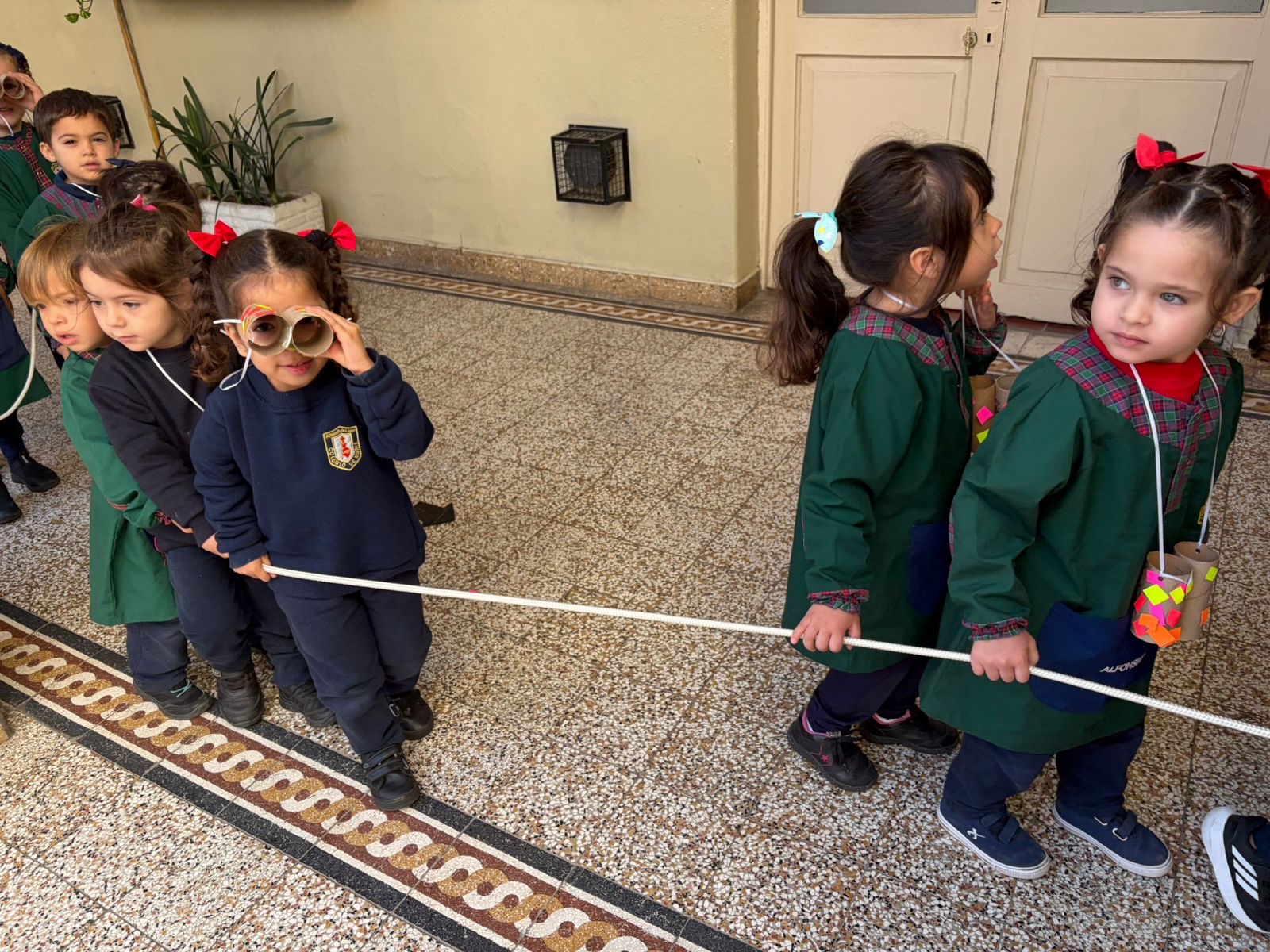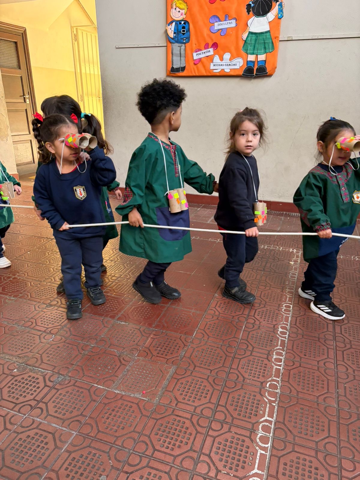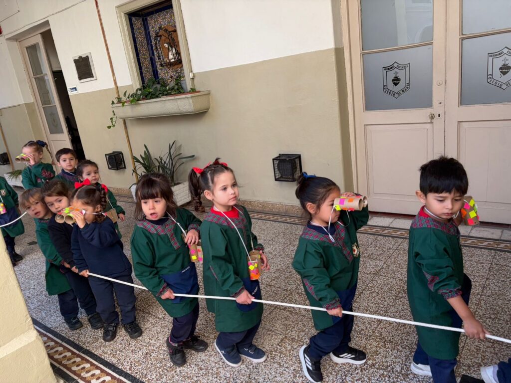 En las Salas de 3 años salimos a recorrer y descubrir nuestro colegio con los binoculares que decoramos en la sala.