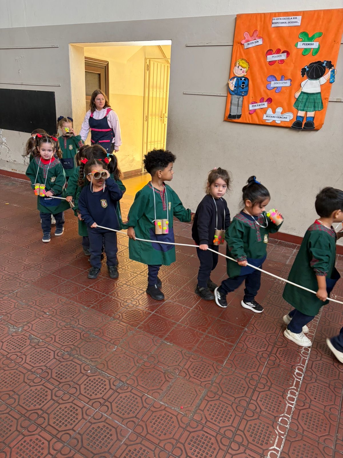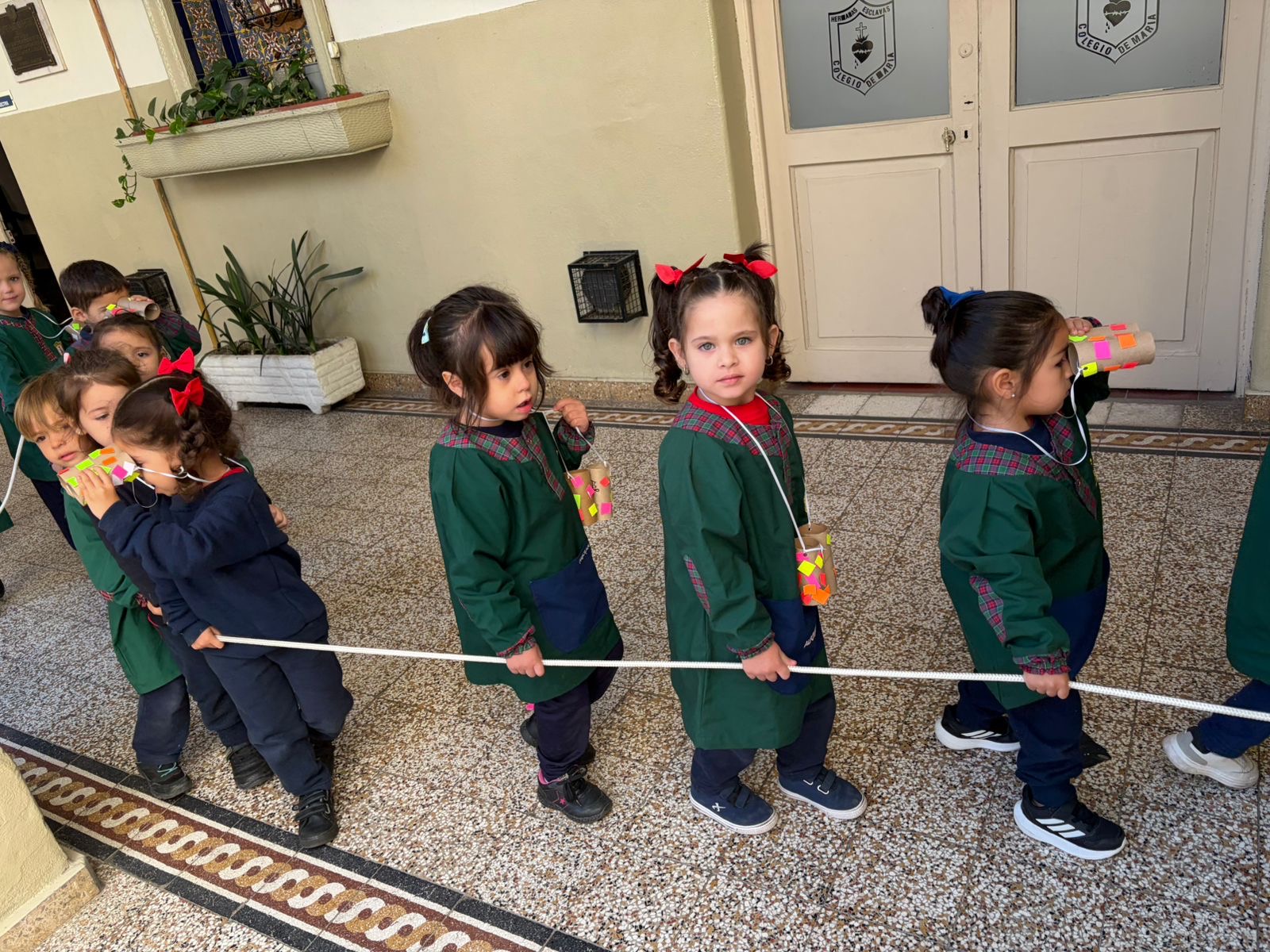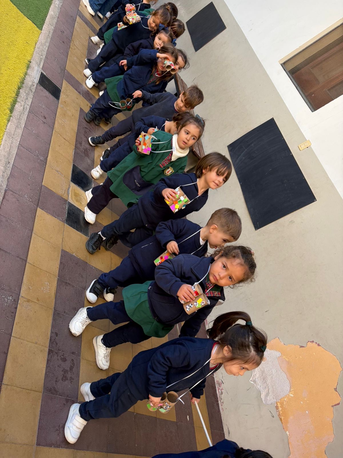 En las Salas de 3 años salimos a recorrer y descubrir nuestro colegio con los binoculares que decoramos en la sala.