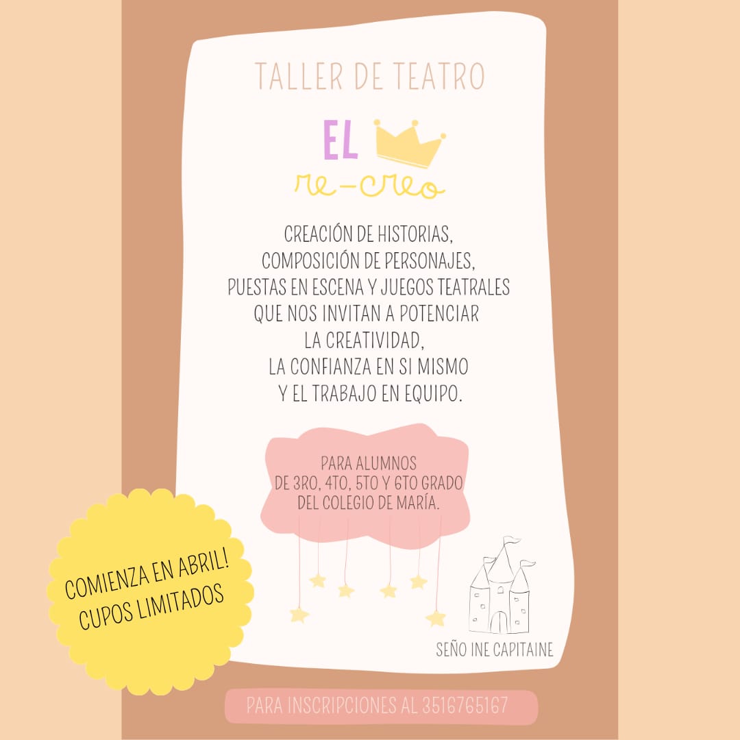 - Para inscribirse en las actividades deben descargar y completar la ficha de inscripción https://colegiodemaria.edu.ar/descargas/InscripcionExtraProgramaticas2025.pdf y presentarla en Administración con el Sr. Kevin Chávez. Del mismo modo, ante la decisión de no continuar asistiendo a la actividad, deben informar en el mismo lugar, ya que sin esa gestión el arancel se continúa abonando. Por consultas deben contactarse con los docentes de las actividades.