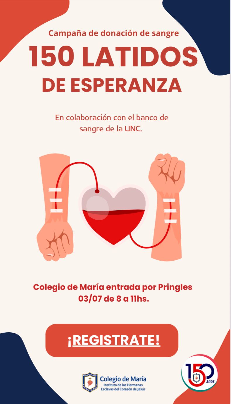 Como cierre del mes del Sagrado Corazón y sumándose a los festejos por los 150 años de nuestro Instituto, las y los estudiantes de 4to año organizaron la campaña de donación de sangre «150 latidos de esperanza» que se realizó el pasado 3 de julio.