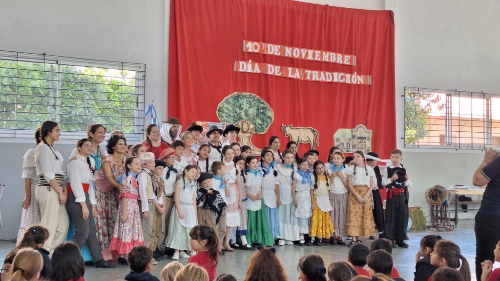 En este aniversario del Día de la Tradición los alumnos de 4to grado B junto a su maestra, profesores de música y baile, vivenciaron nuestra cultura, la que nos caracteriza ante el mundo y nos identifica como argentinos.