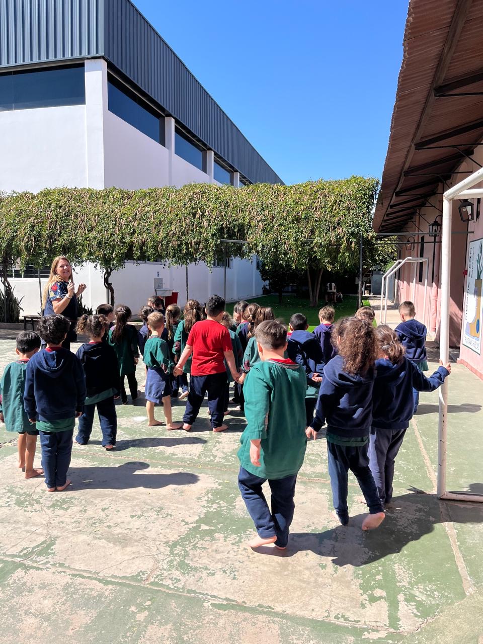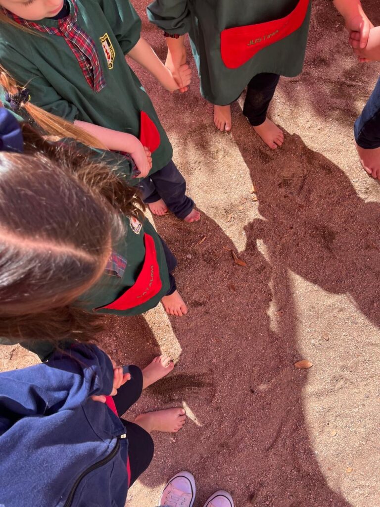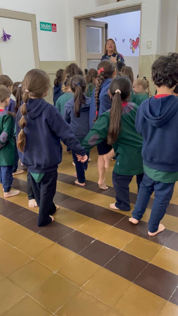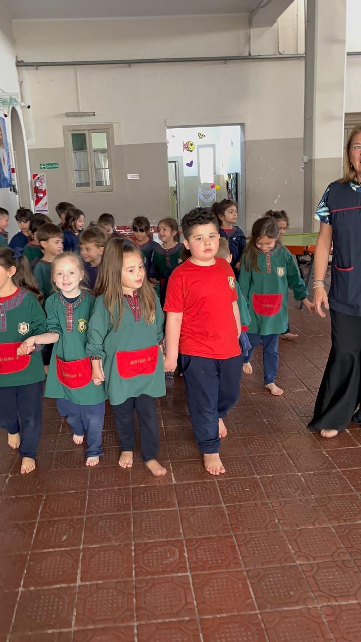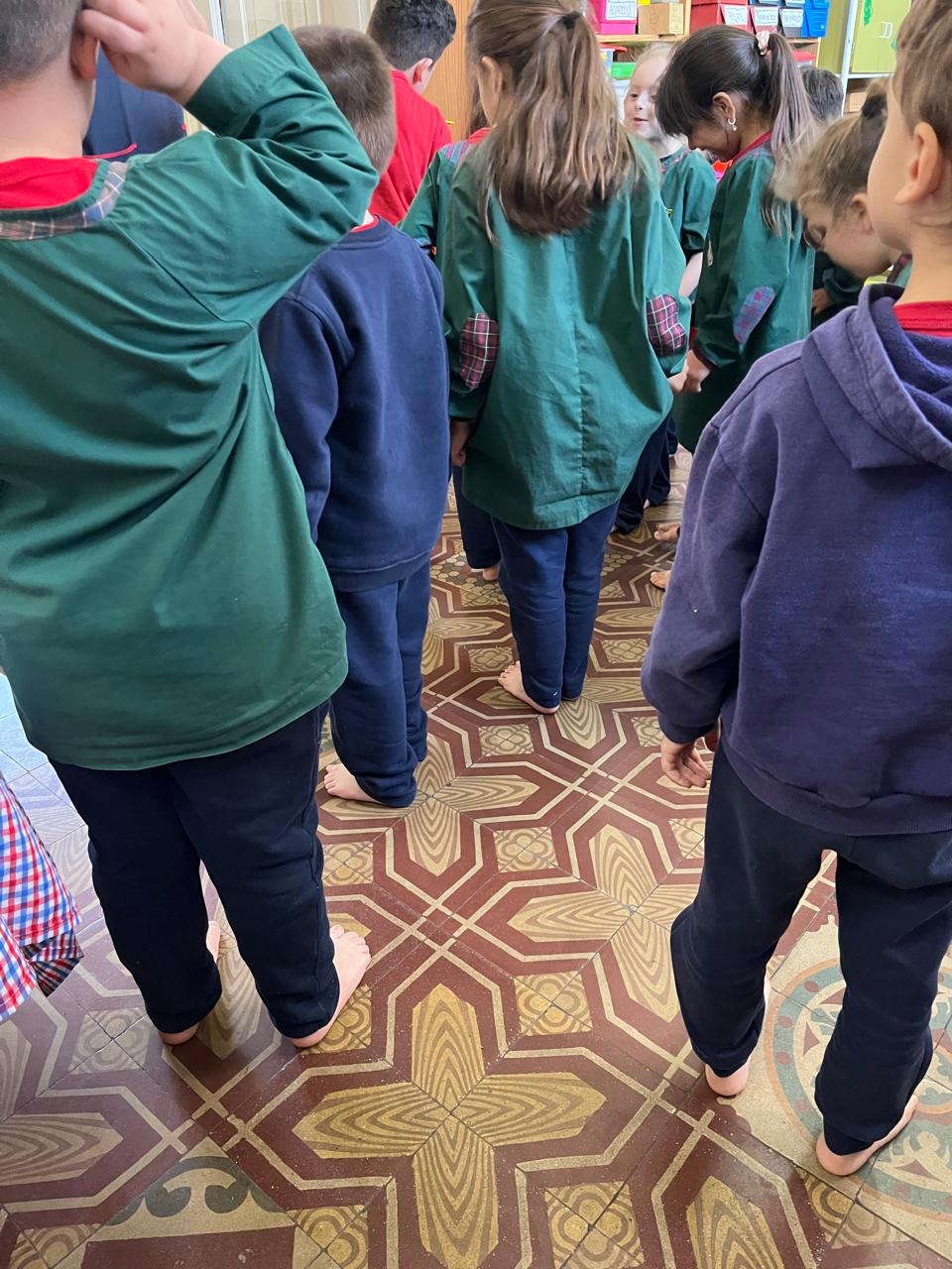 Hoy en la sala de 5 nos animamos a sentir con todo el cuerpo. Nos descalzamos para recorrer diferentes superficies: suaves, rugosas, frías, tibias… Cada paso fue una palabra, cada sensación una emoción. Mientras caminábamos, una voz nos iba invitando a descubrir que la poesía también se puede escuchar, tocar y vivir.