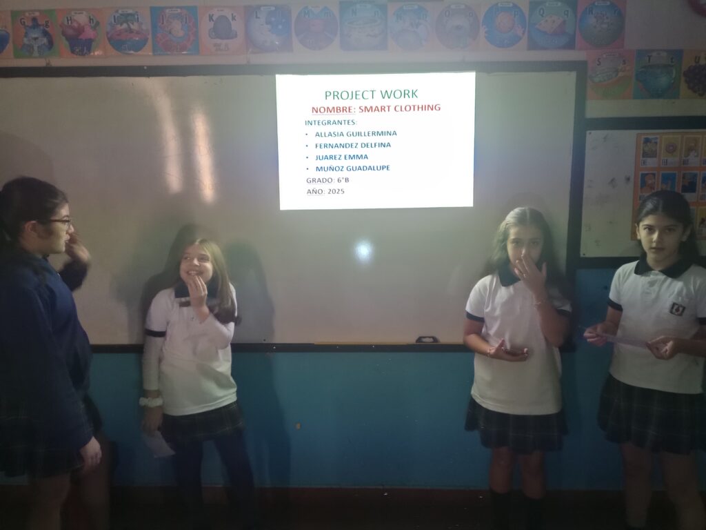 En el marco del trabajo por proyectos, los alumnos de sexto grado A y B trabajaron en un trabajo integral de inglés que consistió en el diseño y descripción de una prenda inteligente. El objetivo fundamental del trabajo fue el uso de las estructuras gramaticales trabajadas en clase y el aprendizaje de vocabulario nuevo principalmente el tecnológico. Los alumnos combinaron el diseño de una prenda con funciones digitales describiendo su uso y propósito. Luego realizaron y presentaron su trabajo por medio de distintas herramientas digitales, ya que también grabaron y crearon videos, incorporando de esta manera el uso de la tecnología en el contexto áulico. El trabajo por proyectos fomenta el aprendizaje activo, significativo y colaborativo. A través de esta estrategia, los estudiantes no solo adquieren vocabulario y estructuras gramaticales, sino que también desarrollan habilidades comunicativas reales, pensamiento crítico y creatividad. Además, al trabajar en equipo, los alumnos practican el inglés de manera más natural, lo que fortalece su fluidez y confianza.