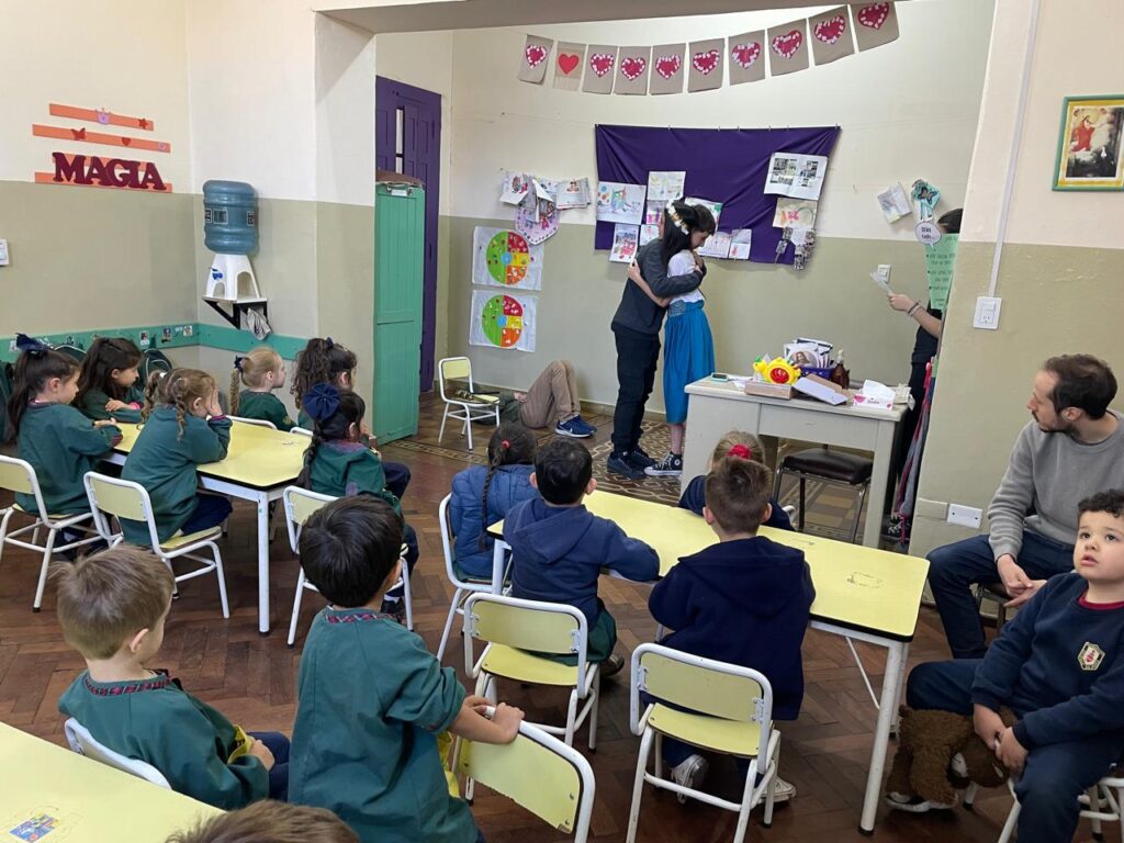 Compartimos la experiencia de estudiantes de 3er año SENIOR quienes asistieron a las salas de 3, 4 y 5 de Nivel Inicial a presentar «Storytelling», cuentos cortos en inglés.